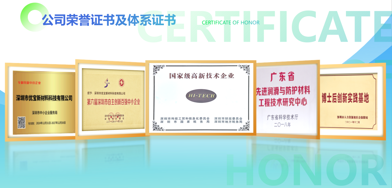 優(yōu)寶新材深耕細(xì)分領(lǐng)域,產(chǎn)品涵蓋特種潤滑脂、電子膠黏劑、高性能涂層等系列,廣泛應(yīng)用于汽車電子、智能制造、消費電子等行業(yè)。